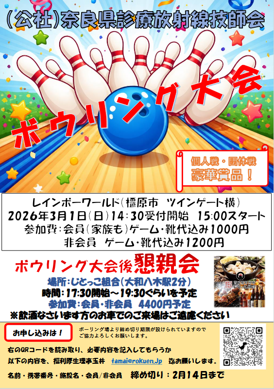 ◆(公社)奈良県診療放射線技師会 ボウリング大会+その後の懇親会のお知らせ