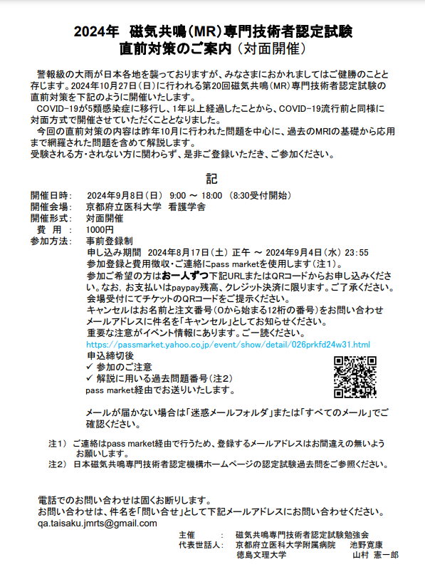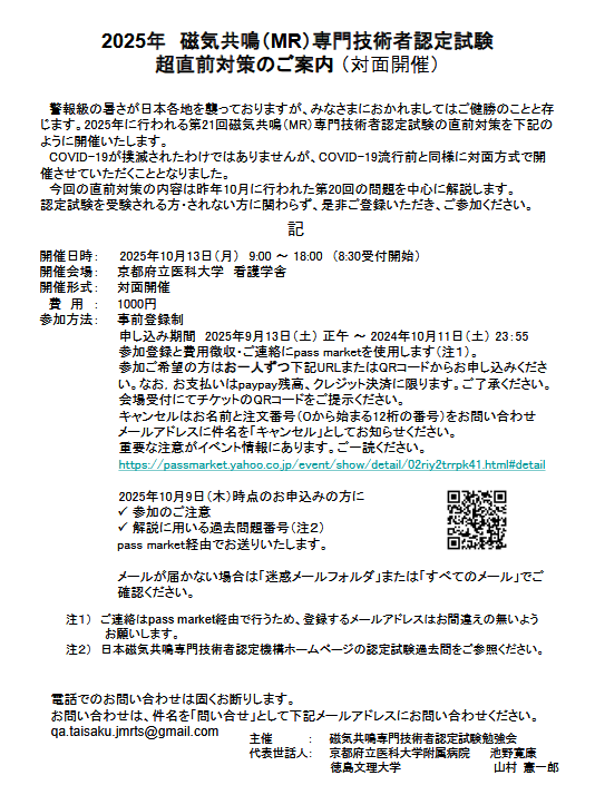 ◆2025年 磁気共鳴(MR)専門技樹種者認定試験超直前対策のご案内