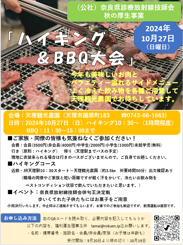 ◆(公社)奈良県診療放射線技師会秋の厚生行事『ハイキング&BBQ大会』