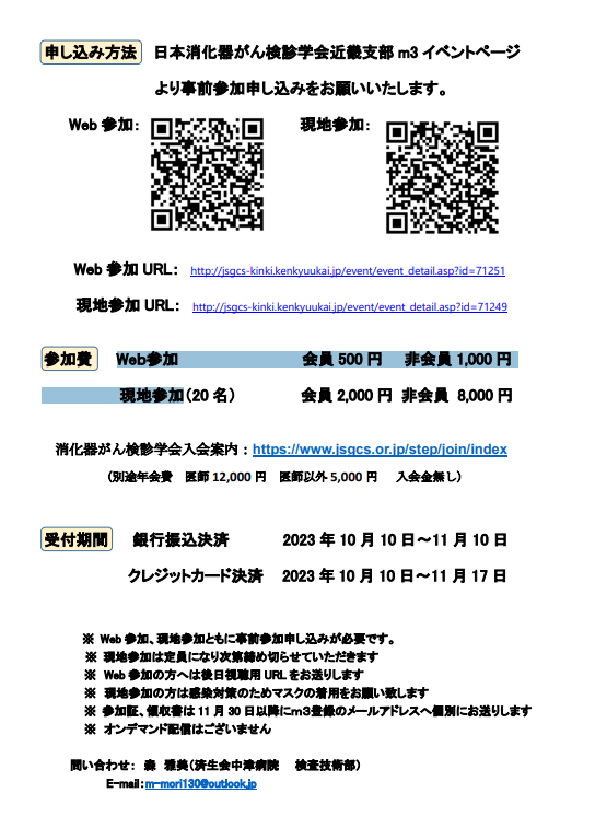 参加費:Web参加   がん検診学会員 500円、非会員1000円