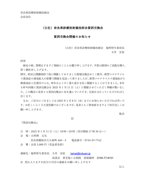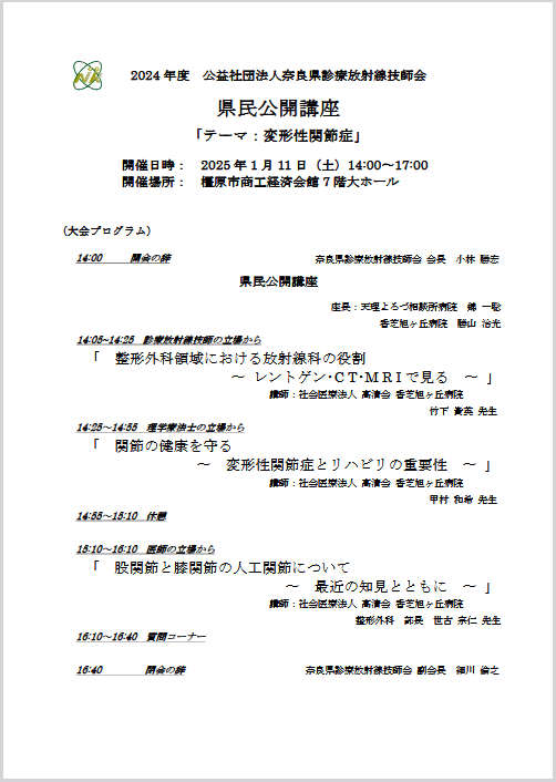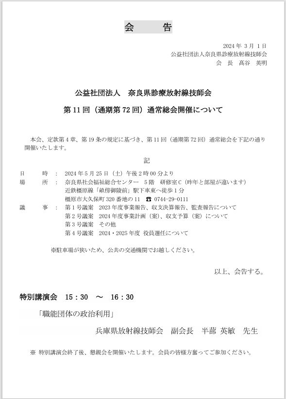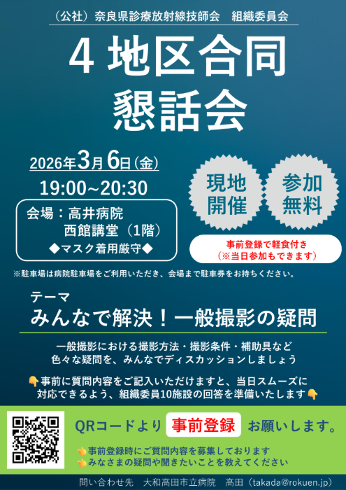 公益社団法人 奈良県診療放射線技師会 組織委員会 4地区合同懇話会のお知らせ