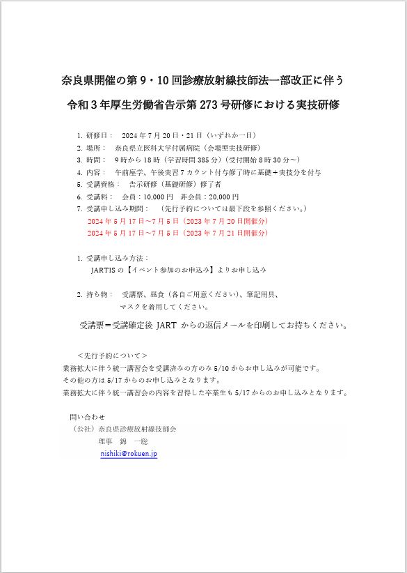 ・日本診療放射線技師会ホームページ JART情報システムから